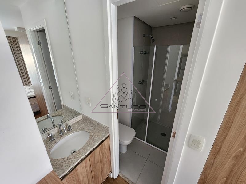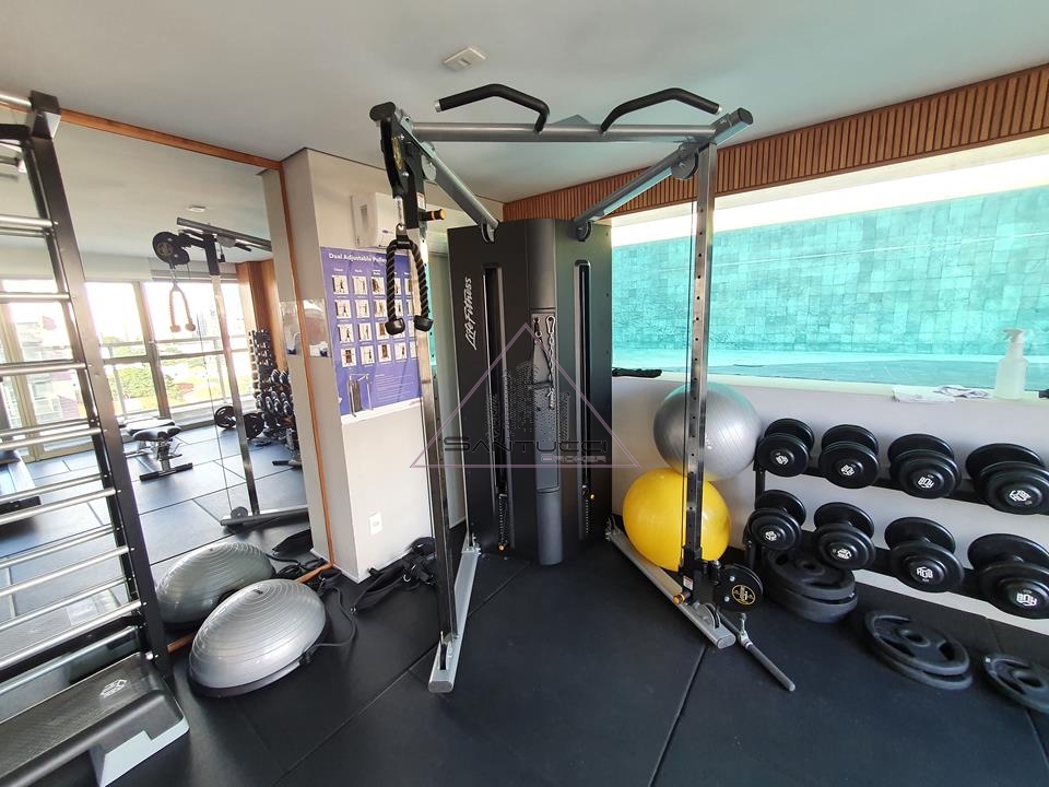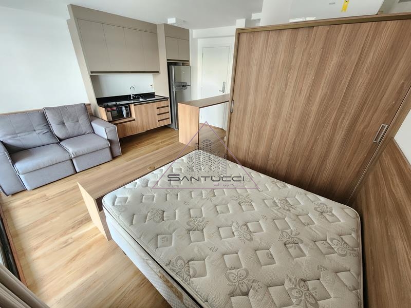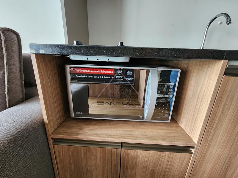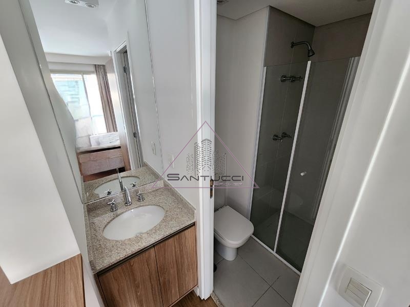 Apartamento tipo Studio mobiliado, cozinha equipada, sala integrada com cozinha e sacada, 1 banheiro com box vidro blindex, 1 vaga de garagem, lazer no terraço com piscina, sollarium, academia, sauna, ducha, e no piso térreo salão de festas e lavanderia coletiva.